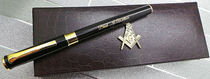 FREE CUSTOM ENGRAVING - We will customize the Masonic pen with a name or monogram initials - Please make sure to add a note to your order with the name - Maximum 15 characters. Please cased pen is accompanied by a signed / dated British Gold Company certificate within a gold envelope, and the outer box ribbon-wrapped, fully branded by The British Gold Company. All in all a most attractive piece and only available in very limited numbers at this price.