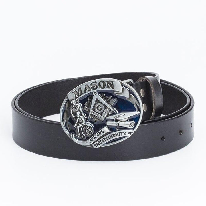 Master Mason Blue Lodge Belt - Serving The Community Square & Compass G (Coffee/Black)