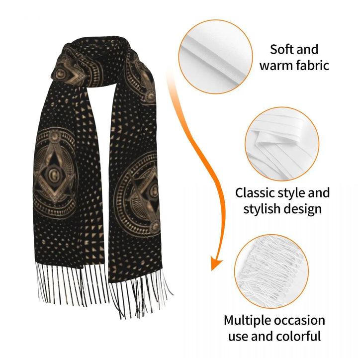 Enhance your wardrobe with our elegant Master Mason Blue Lodge Scarf, a perfect blend of style and symbolism. Crafted from soft, high-quality polyester, this scarf is designed to provide both comfort and durability. Featuring a tasteful print and adorned with tassels, it serves as a versatile accessory that can be worn as a shawl or wrap. The sophisticated pattern makes it an ideal choice for lodge events or casual outings, allowing you to showcase your Masonic pride with grace and distinction.